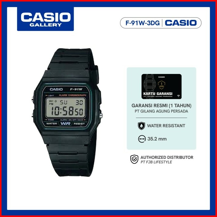 Casio Jam Tangan Original Pria F-91w-3dg Digital Black