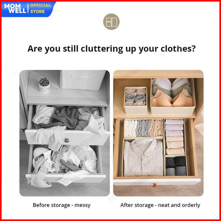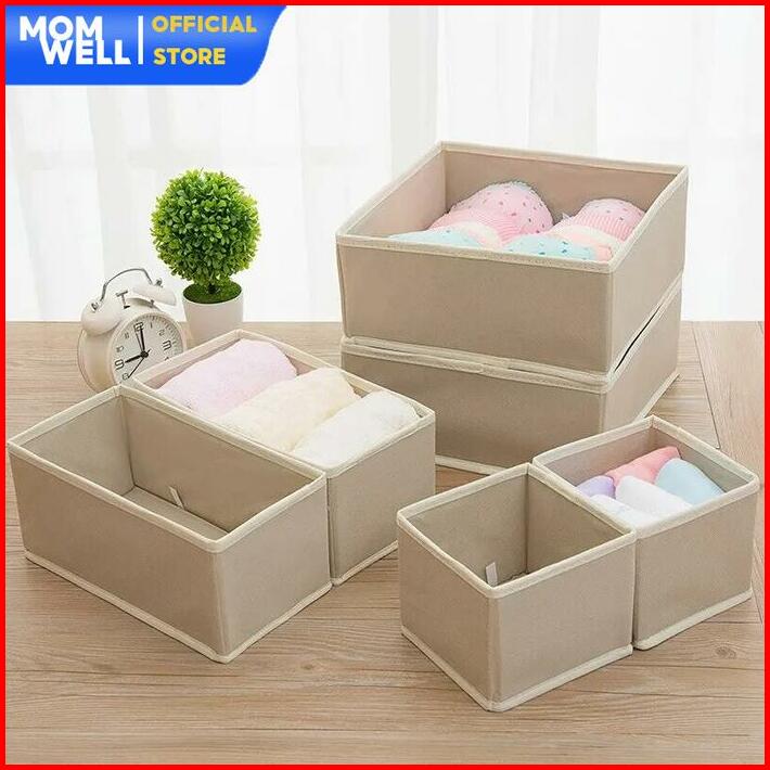 Momwell Kotak Penyimpanan Serbaguna Set 6 Storage Box Organizer Kain Sekat Lemari Tempat Penyimpanan Abu Pakaian