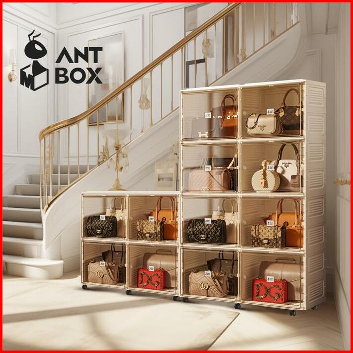 Antbox Lemari Plastik Varian 4-10 Box 2 Baris Penyimpanan Perawatan Tas Mainan-susun Transparan Two Colour Akrilik Tebal