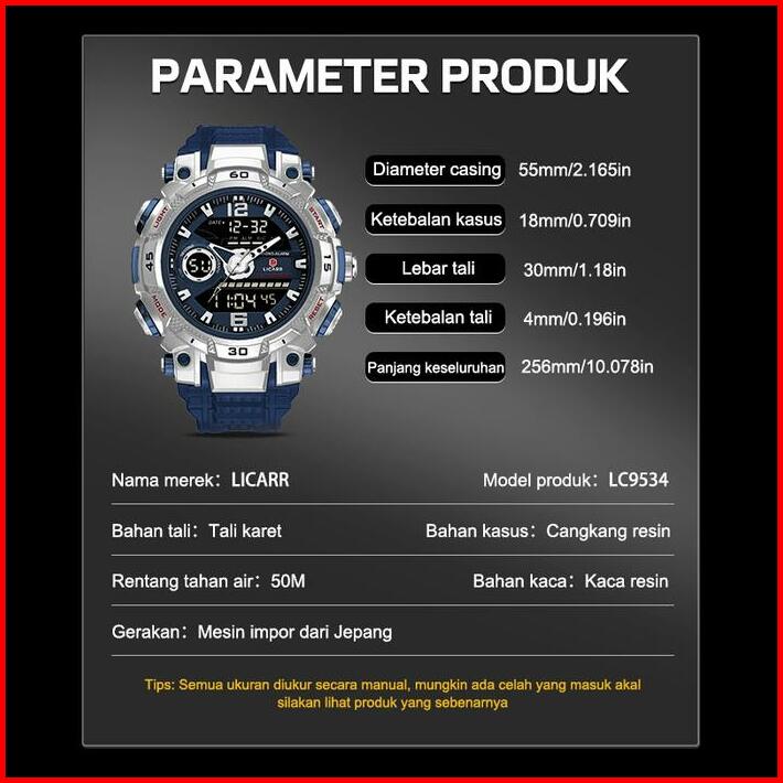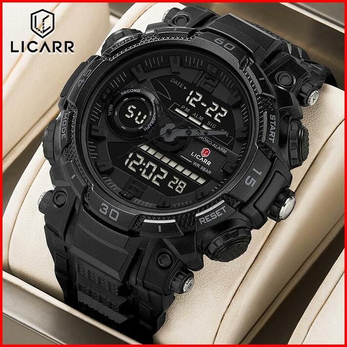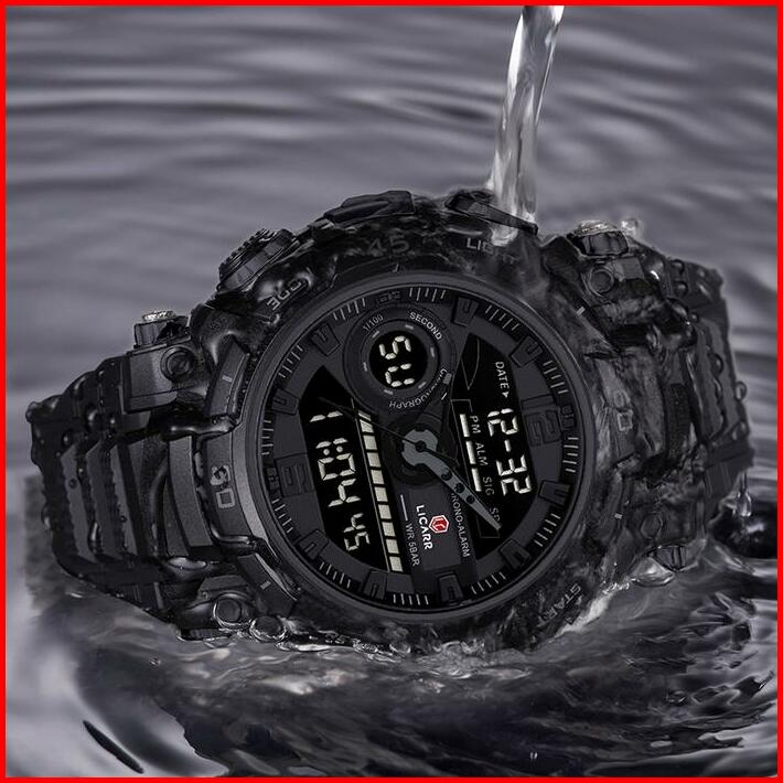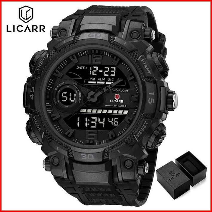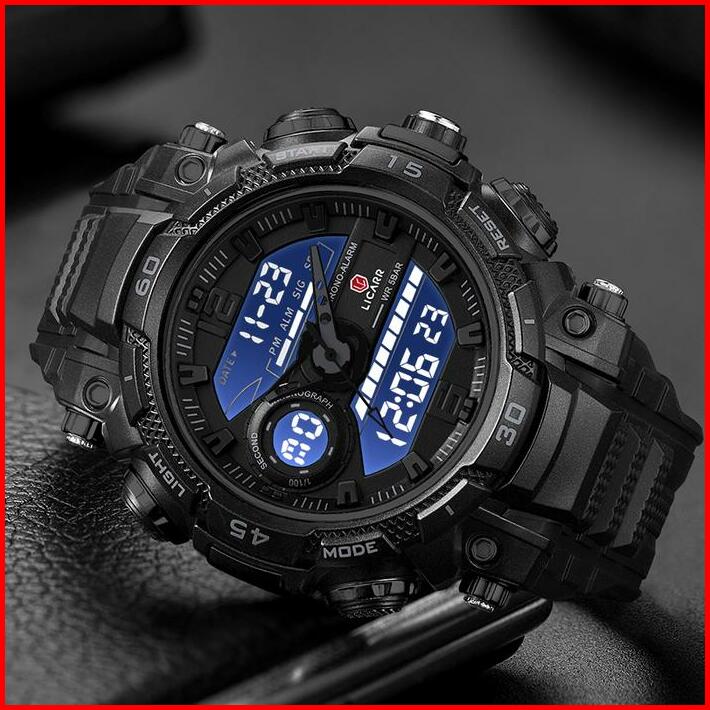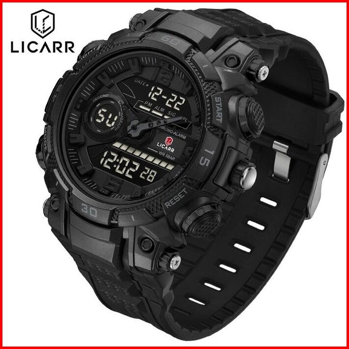 Licarr Jam Tangan Pria Olahraga Analog-digital Kasual Anti Air Kuarsa Jam Tangan Cowok Original Merek Stopwatch Alarm Ka