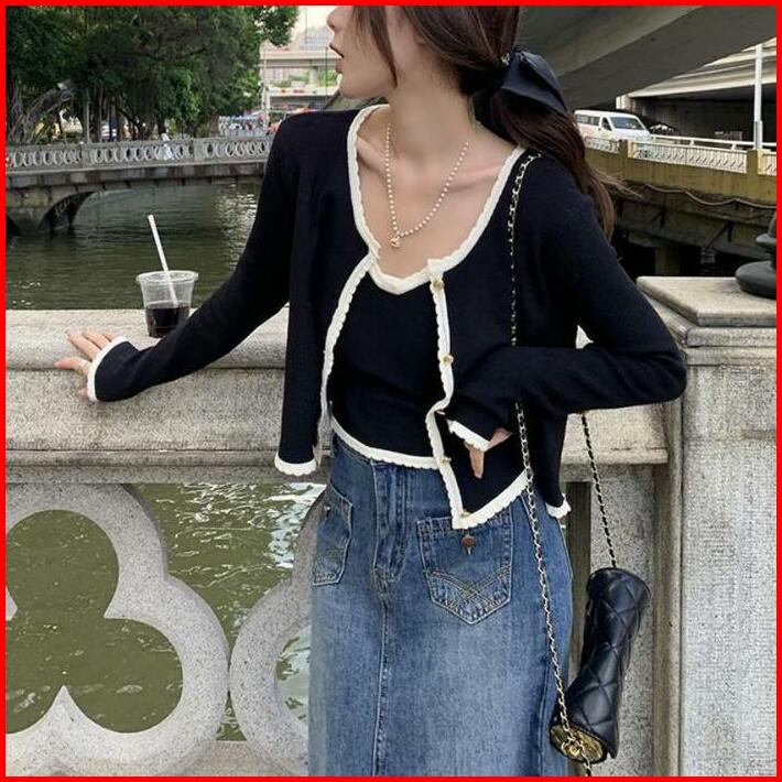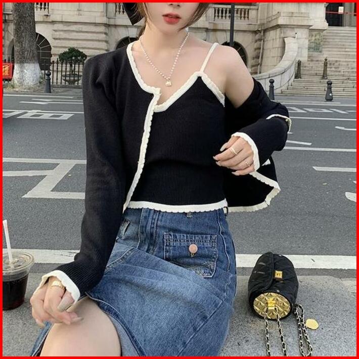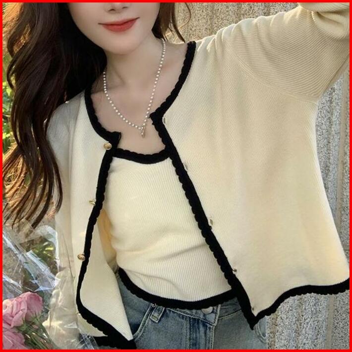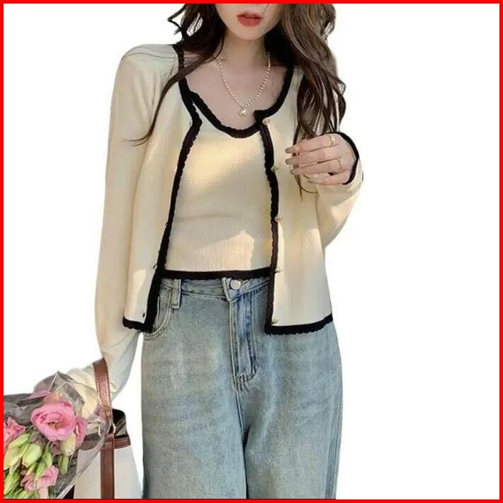 Cardigan Rajut Wanita Kardigan Crop Outer Wanita Cardigan Set 2 Pcs Baju Panjang Knitwear Atasan