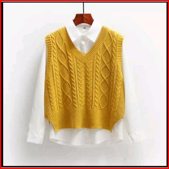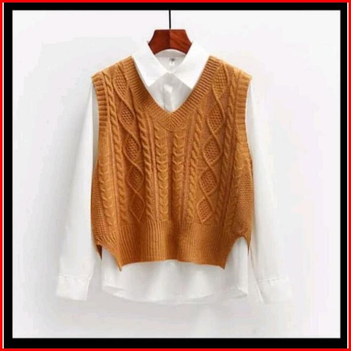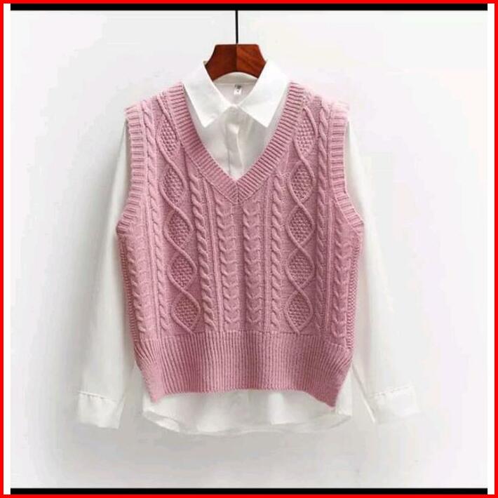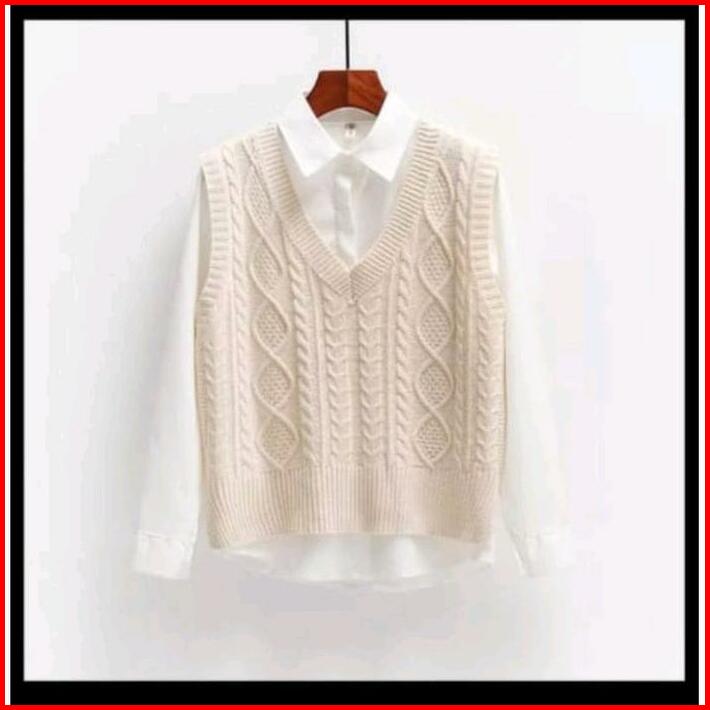 Vest Aiko Cable Knit Rompi Rajut Premium Wanita Outer Buntung