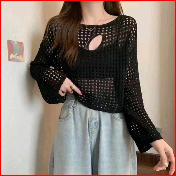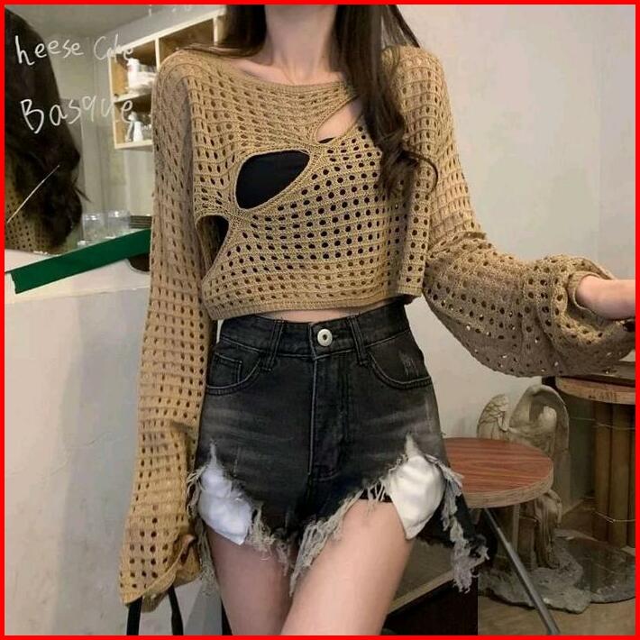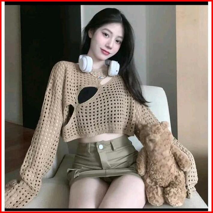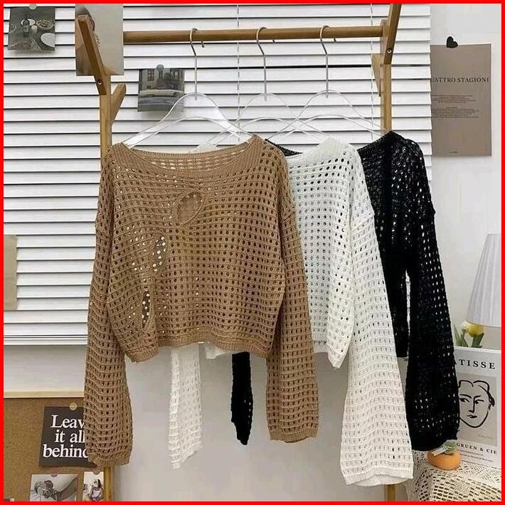 Bella Top Blouse Jaring Atasan Wanita Rajut Outer Knit Crop