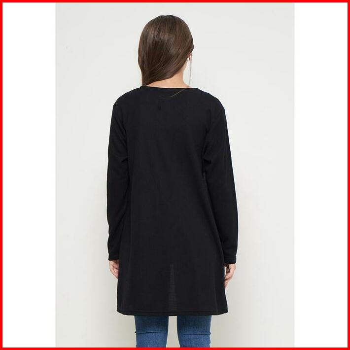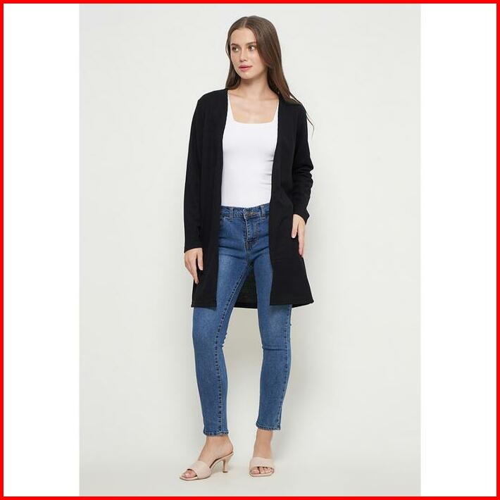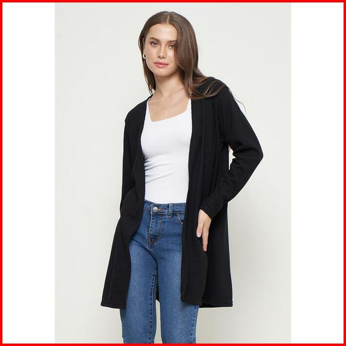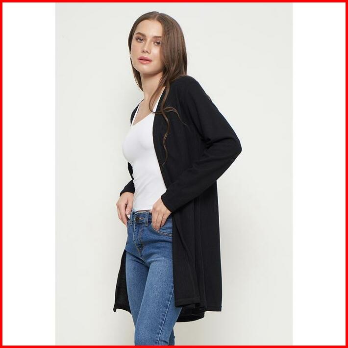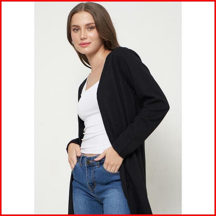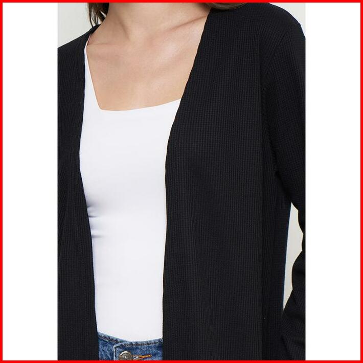 Cardigan Knit Waffle Outer Rajut Wanita Lengan Panjang Hitam Sr002