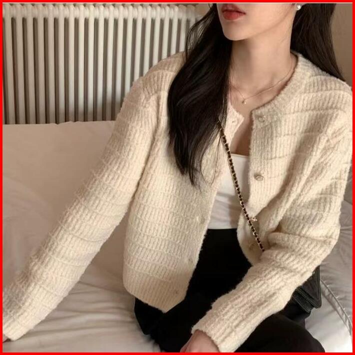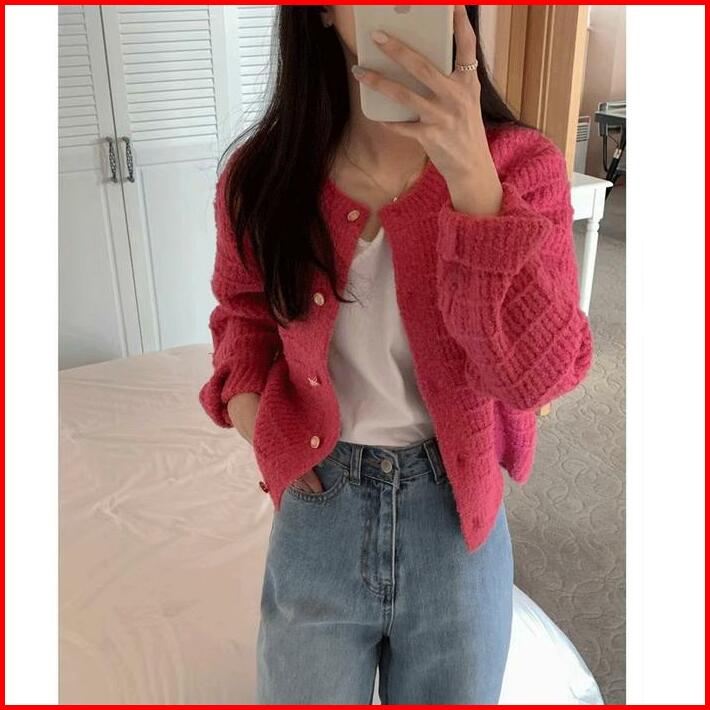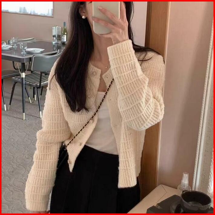 Cardigan Wanita Rajut Crop Premium Korean Style Lengan Panjang Kardigan Retro Terbaru Outer Knit