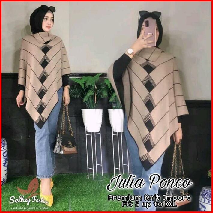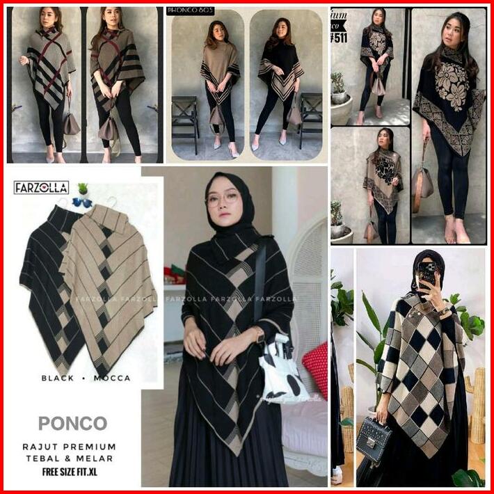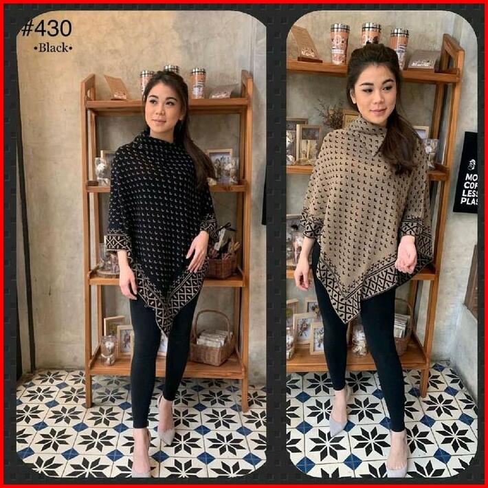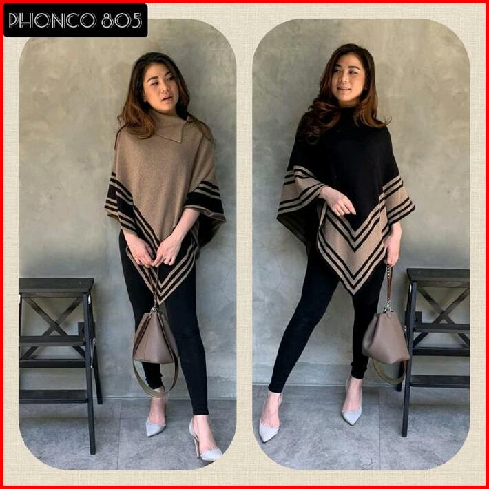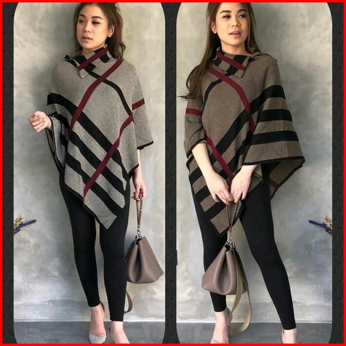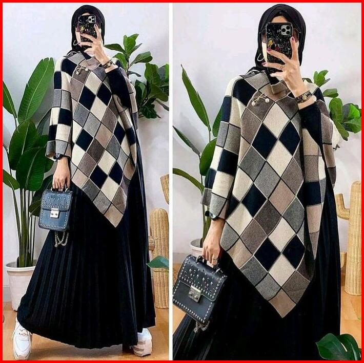 Ponco Imel Kotak Batik Garis Outer Knitwear Lembut Rajut Halus Premium Wol Nyaman Wanita Atasan Motif