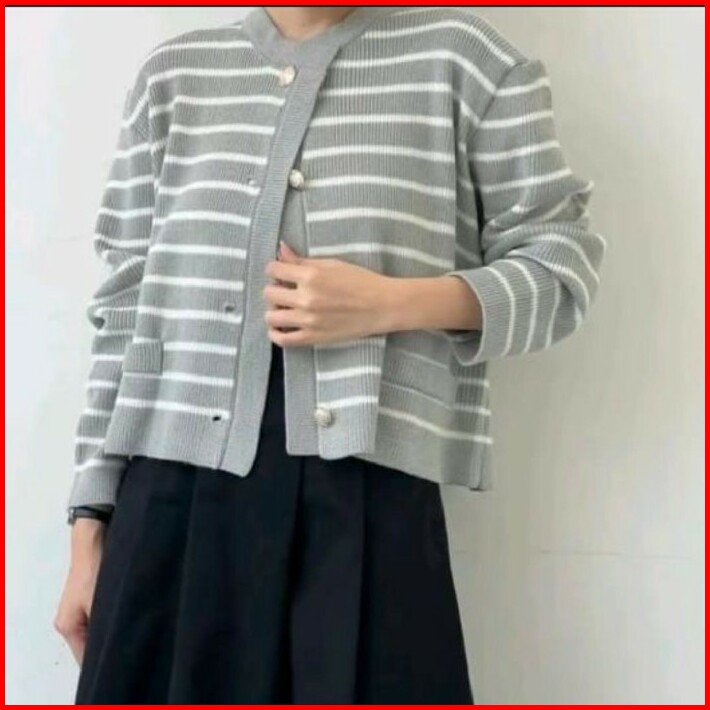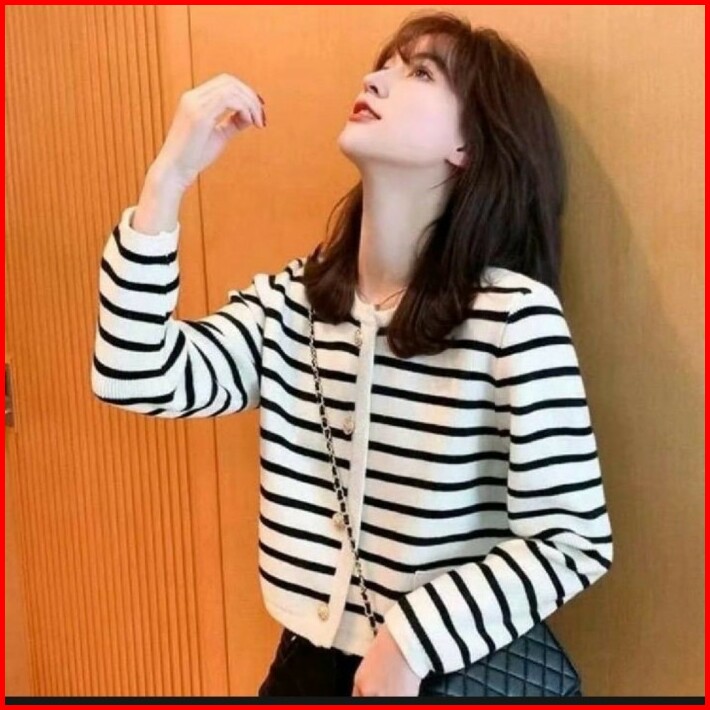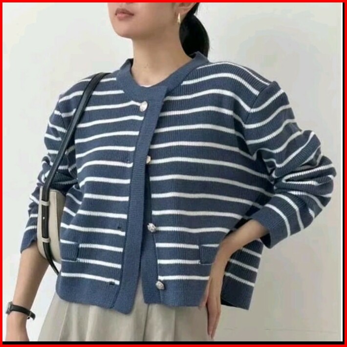 Lalisa Cardigan Rajut Premium Wanita Stripe-knit Kancing Outer Cardy