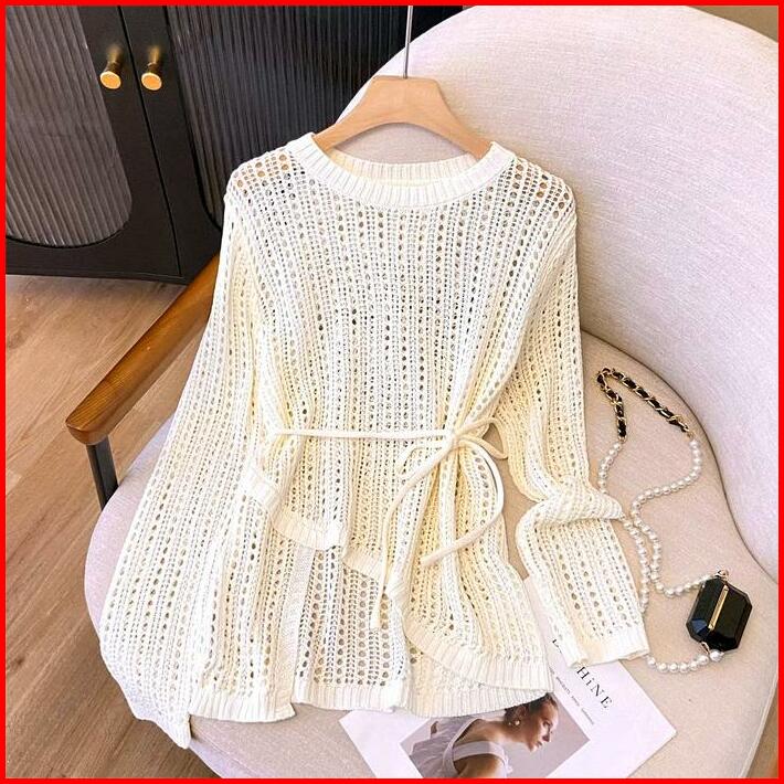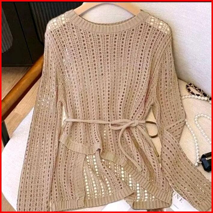 Yuruma Sweater Rajut Jaring Tali Knitwear Atasan Wanita Outer
