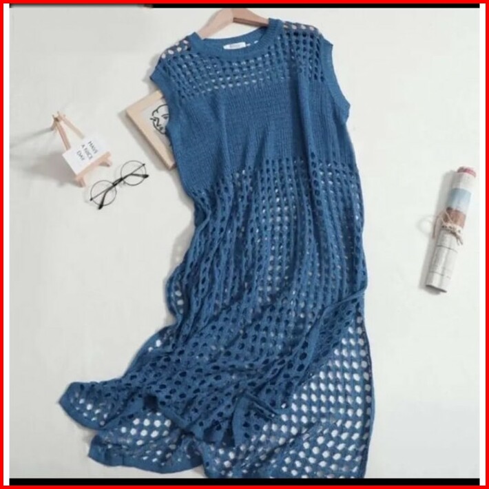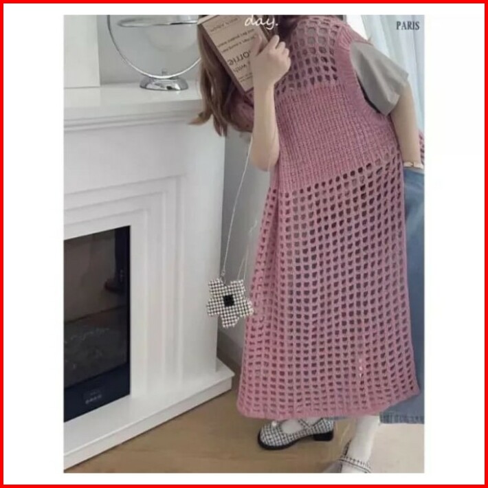 Outer Wanita Bahan Rajut Wakuta Long Rajut Knite Motif Bolong