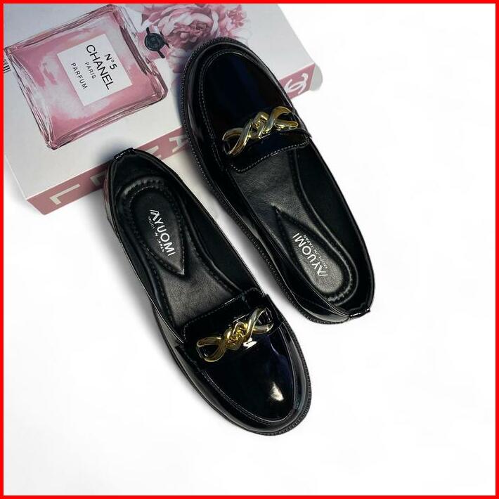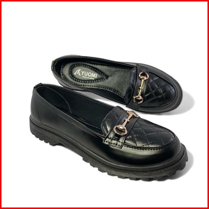 Yuomi Sepatu Loafers Docmart Wanita Kasual Premium Quality Sepatu Flat Kulit Hitam Cewek 09 Kekinian Gaya Shoes Kerja