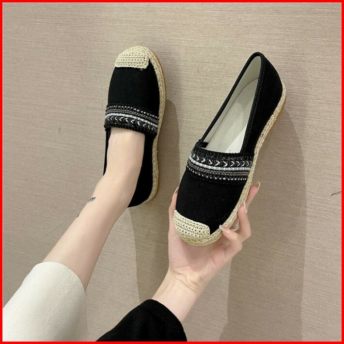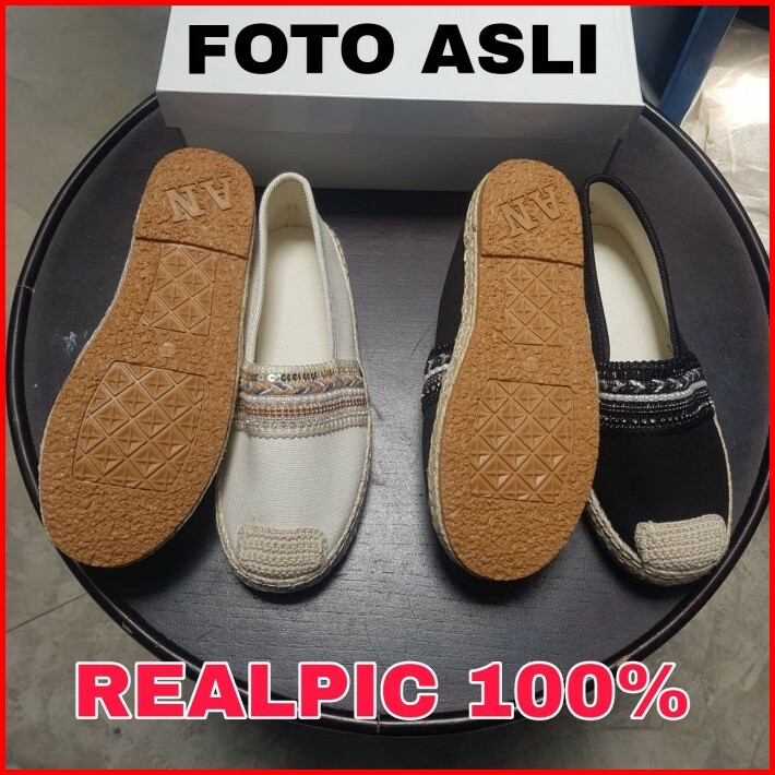 Sepatu Loafers Espadrilles Wanita Kanvas Rajutan Import Flat Shoes Ori