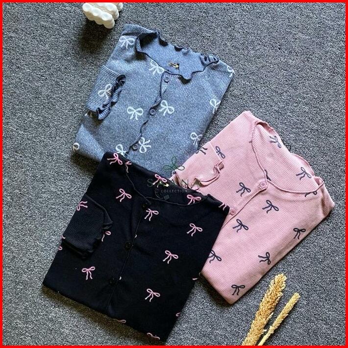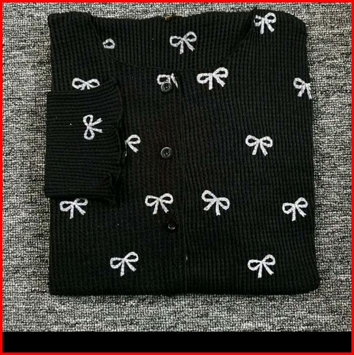 Study Storeecardigan Wafle Motif Pita Kupu-kupu Cardigan Crop Motif Atasan Wanita Outer