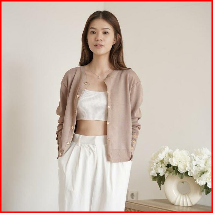 Tara Knit Cardigan Outer Cardigan Kardigan Panjang Knitwear Wol Wanita Brown Kardigan Santai Wol Tebal Oversize Kerah Ny