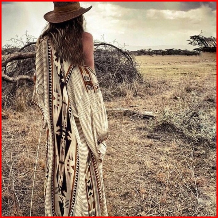 Beige Boho Cardigan Kimono Wanita Bohemian Outer Long Dress Maxi Bali