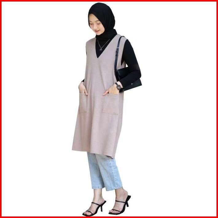 Outer Wanita Tanpa Lengan Import From Korean Style Rompi Tunik Panjang