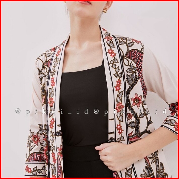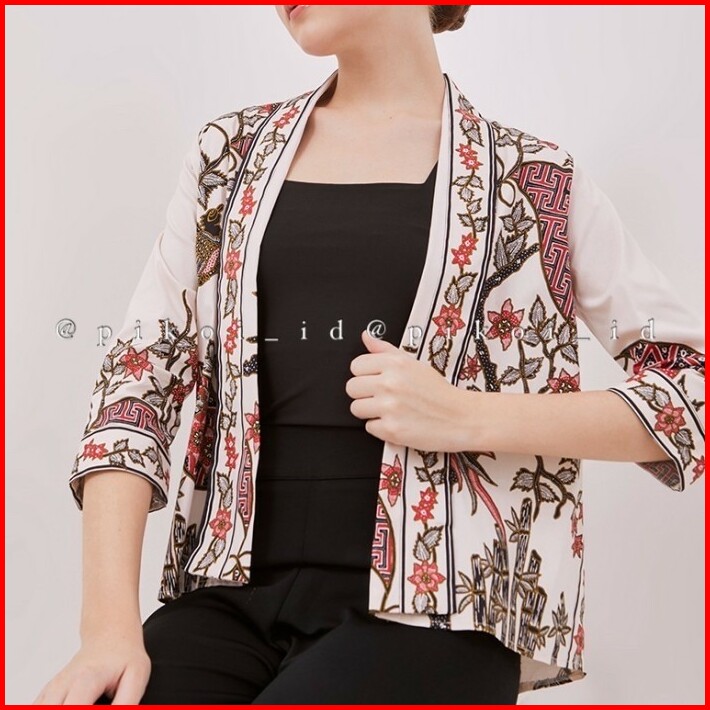 Outer Batik Kuning Pastel Bolero Wanita Batik Modern Blazer Batik