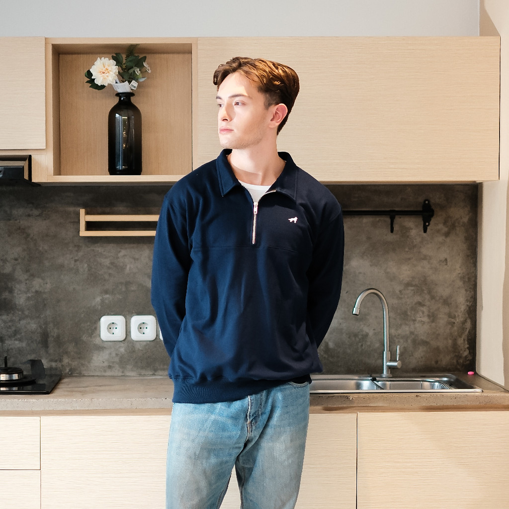 Gut Franc - Franc Half Zip Terry Sweatshirt in Navy