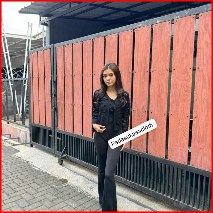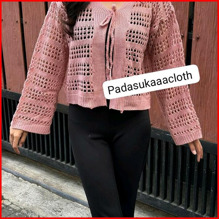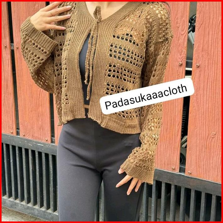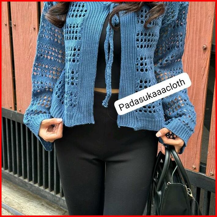 Arumi Outer Crop Cardigan Jaring Knitwear Tali Atasan Wanita Kardigan Top Cewek
