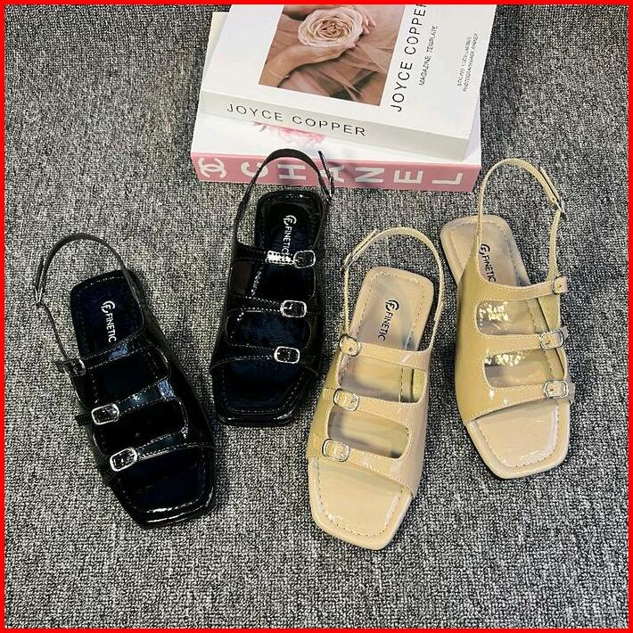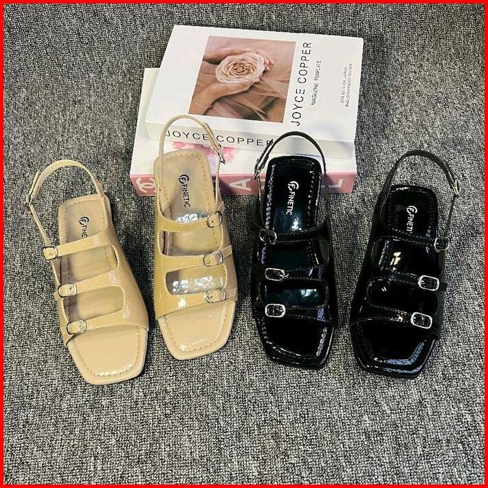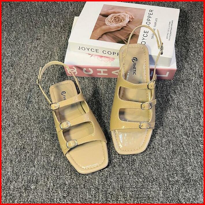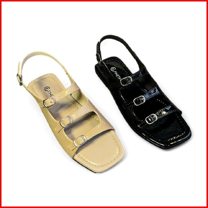 Finetic Sandal Flatshoes Cewek Kekinian Platform Flat Busa Empuk Sendal Wanita Karet Kerja