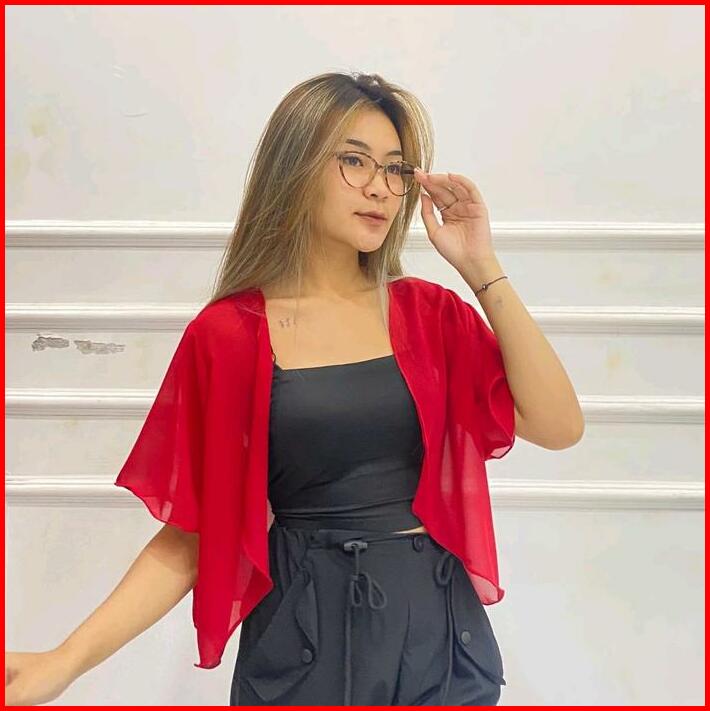 Outer Bolero Rompi Atasan Wanita Bahan Ceruty Trendy Pormal Kondangan Wisuda Polos Hitam Pendek Top Basic Fit Nyaman Cro