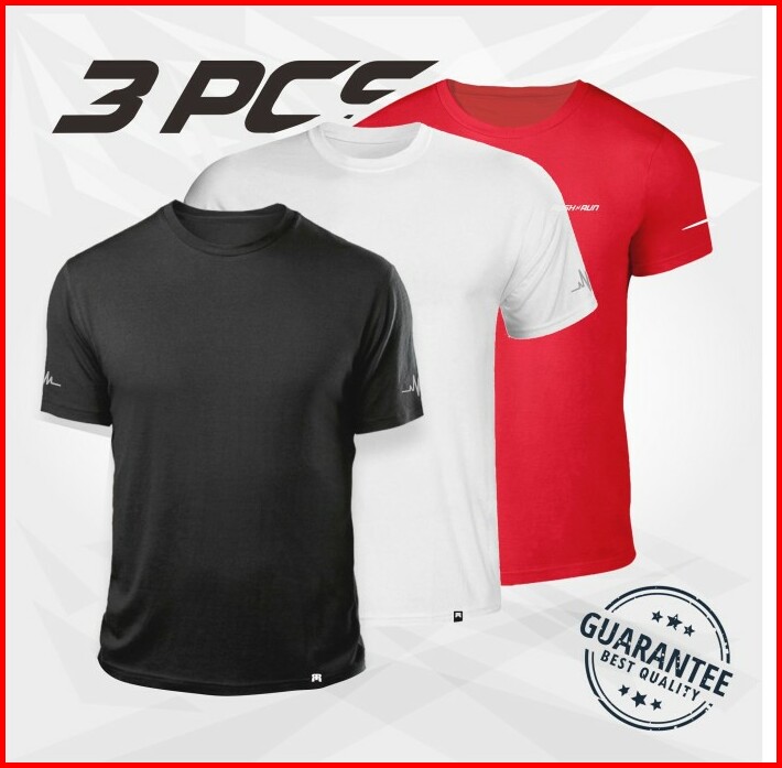 Paket 3 Pcs Baju Kaos Olahraga Pria Rush N Run Bahan Dry Fit Dryfit