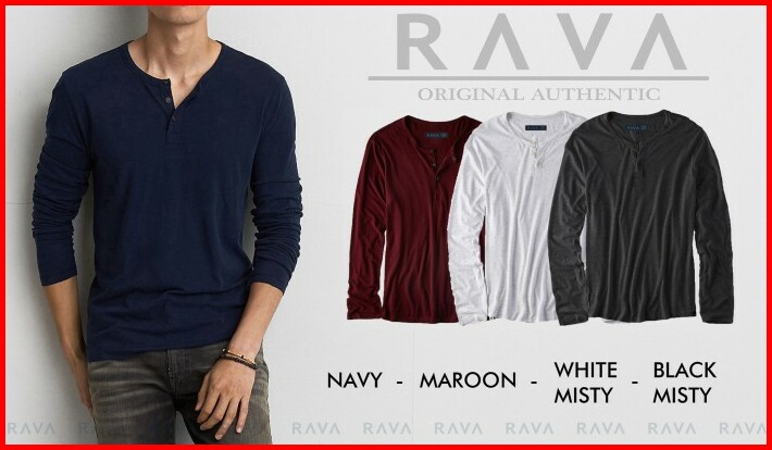 Baju Kaos Pria Henley Lengan Panjang Misty By Rava Best Seller