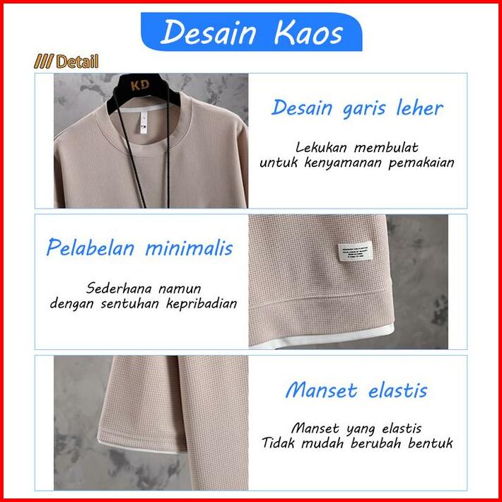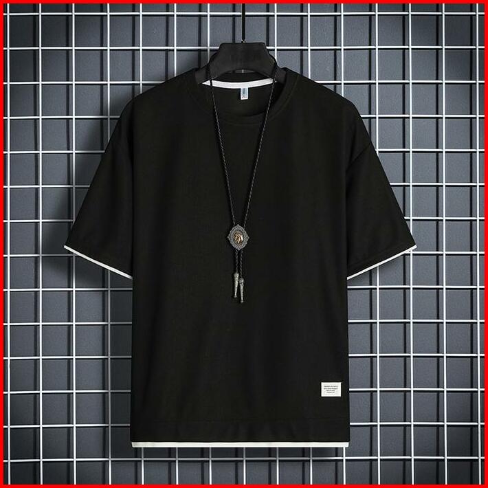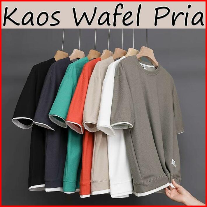 Kaos Pria T-shirt Pria Kaos Yang Ringan Dan Sejuk Kain Wafel Yang Dapat Bernapas Baju Kaos Dewasa Hitam Keren Polos Pend