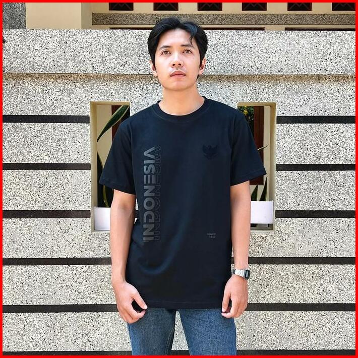 Aloomni Kaos Indonesia 1945 Limited Edition Black On Black T-shirt Cotton Combed 24s Baju Pria Hitam