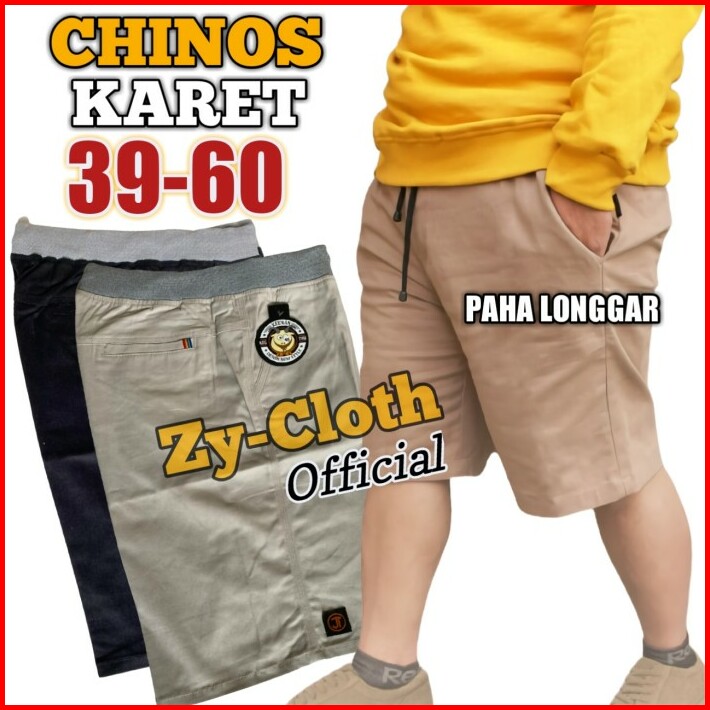 Celana Pendek Pria Jumbo Chino Pinggang Karet Big Size Paha Longgar