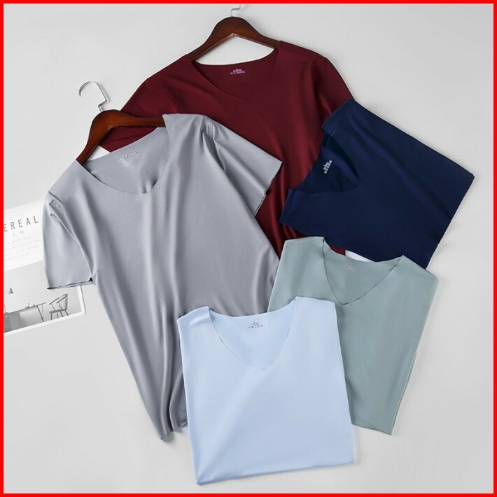 Baju Kaos Pria Bahan Ice Silk Adem Seamless Lembut Lengan Pendek Pdp 16