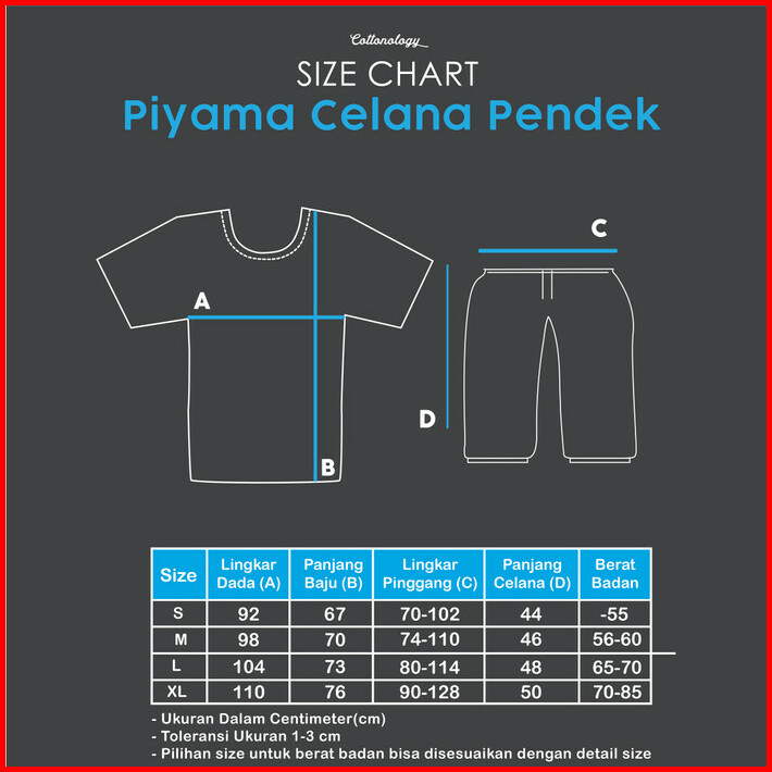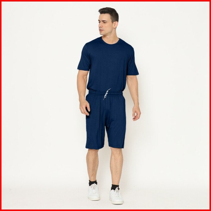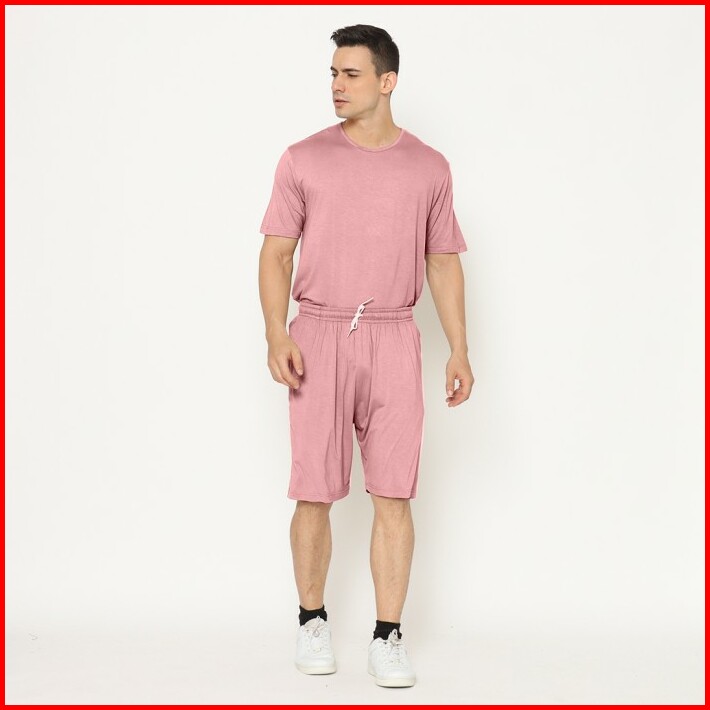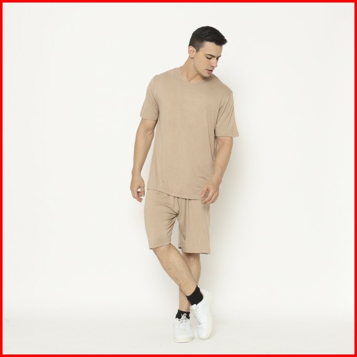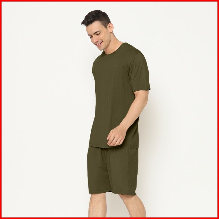 Cottonology Setelan Piyama Pria Celana Pendek Polos