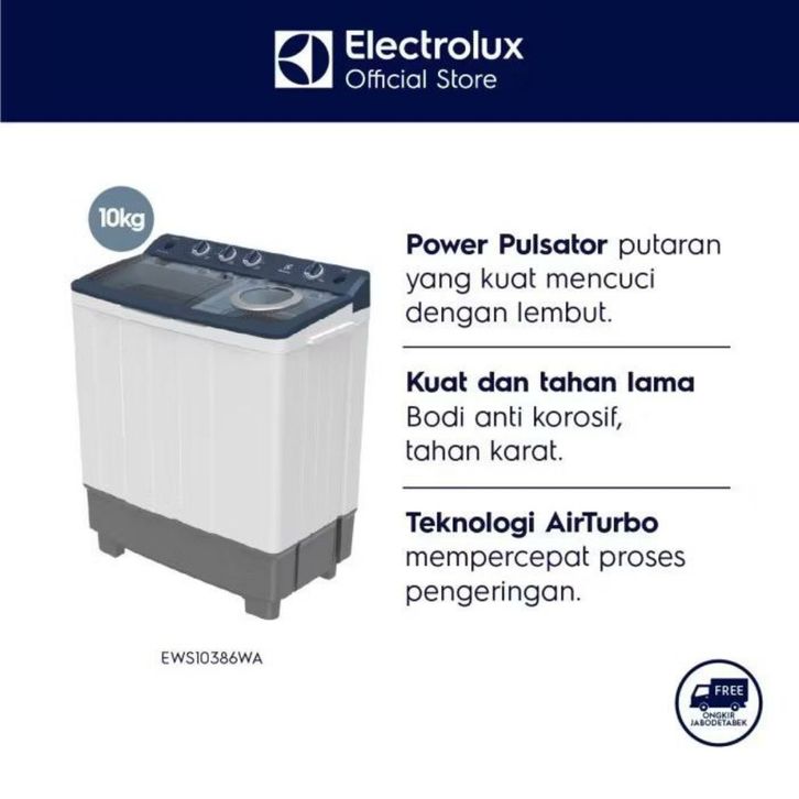 MESIN CUCI ELECTROLUX 2 TABUNG 12KG EWS12386WA POWER PULSATOR AIR TURBO 10KG 8KG GARANSI RESMI 12 10 8 KG