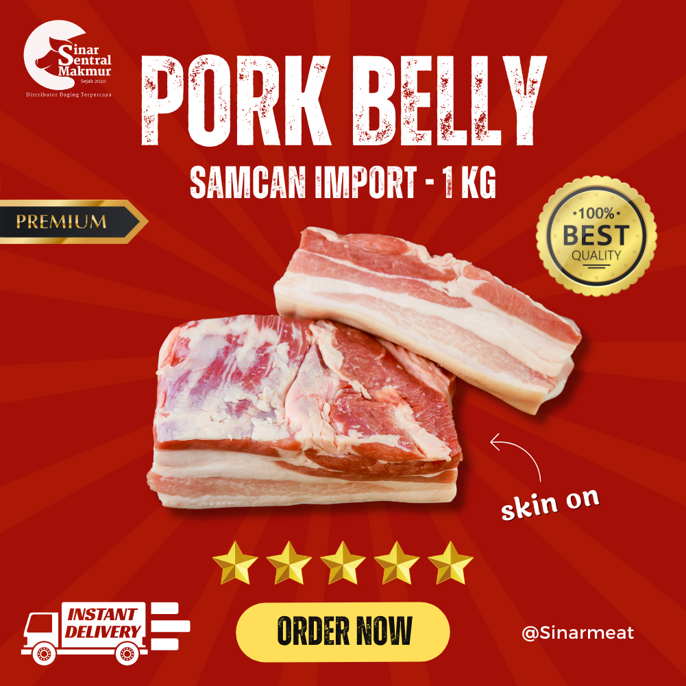 DAGING BABI SAMCAN KULIT / PORK BELLY SKIN ON IMPORT PREMIUM 1KG