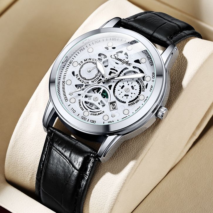 Sunlifex Jam Tangan Pria Dial Berongga Anti Air Kuarsa Tali Kulit Jam Pria Original Santai Mode Jam Tangan Cowok 7001