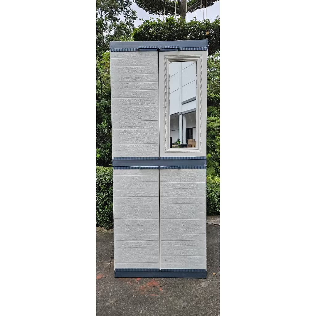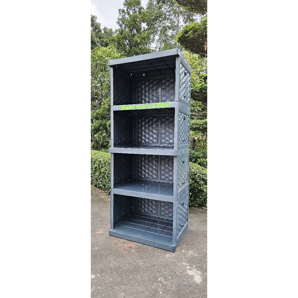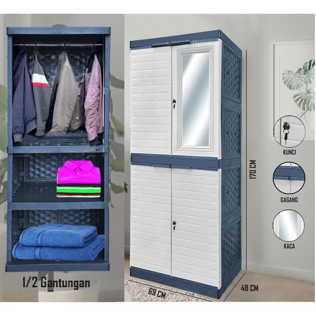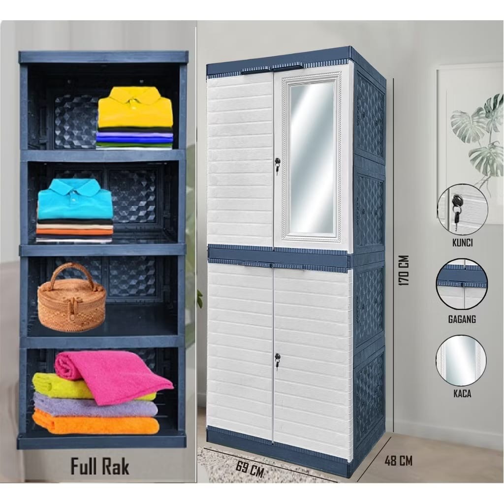 Akako Lemari Baju Pakaian Plastik Cermin Kaca MURAH KUAT 4 Susun FULL KUNCI GANTUNG RAK