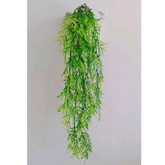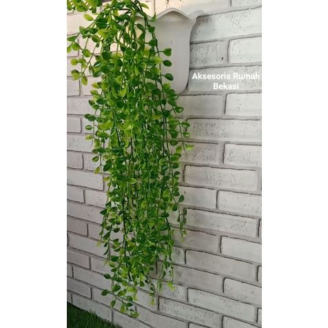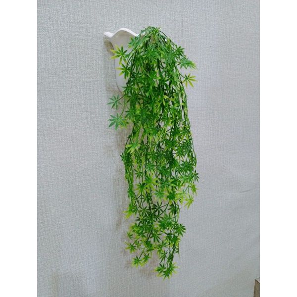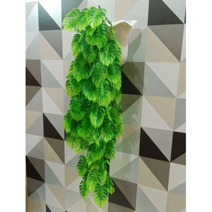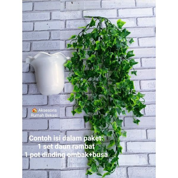BUNGA RAMBAT DAUN KWACI ARTIFICIAL DENGAN POT DINDING OMBAK BUSA DEKORASI DINDING BUNGA HIAS DAUN RAMBAT BEST SELLER