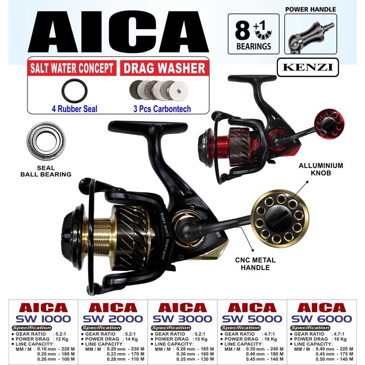 Reel Pancing KENZI AICA & AICA PRO SW 1000–6000 – Spinning Reel Tahan Air Laut & Tawar | Power Drag Halus & Kuat