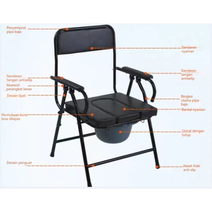 Highline Commode Chair Kursi Lipat Toilet Kursi BAB Untuk Wanita Hamil Orang TUA Orang Sakit Sella Kursi BAB Home Care