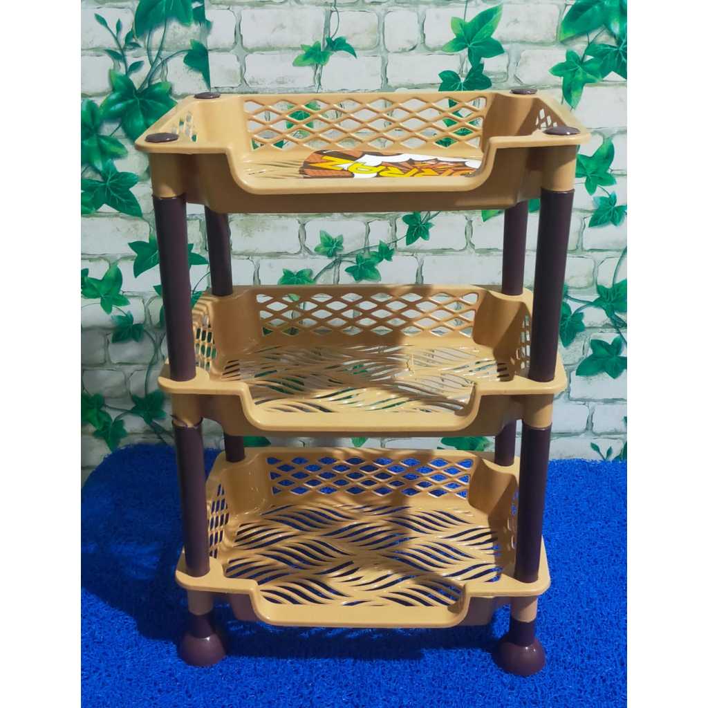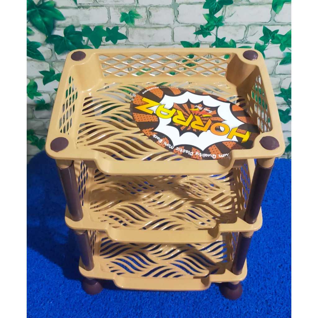 RAK PLASTIK 3 SUSUN SEGI HORRAZ CAPUCINO / RAK KOSMETIK RAK DAPUR RAK BAWANG RAK MINI SERBAGUNA