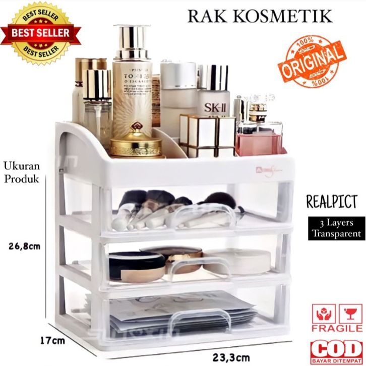Rak Kosmetik / Rak Make Up Susun Plastik 3 Laci / Rak Serbaguna 3 Susun Jumbo