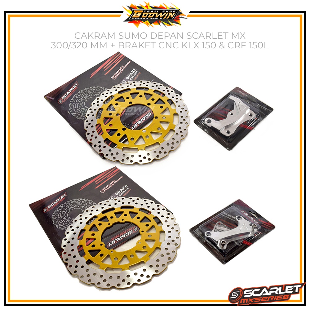 PIRINGAN CAKRAM DEPAN BELAKANG DISC SUMO SCARLET 300MM / 320MM + BRAKET CNC DTRACKER DT NEW KLX 150 CRF 150L