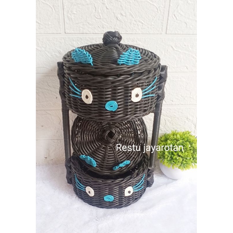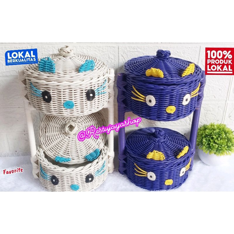RAK Bawang dan Rak bumbu dapur rotan estetik Rak susun2 Rak serbaguna Rotan/sintetic( K2 )