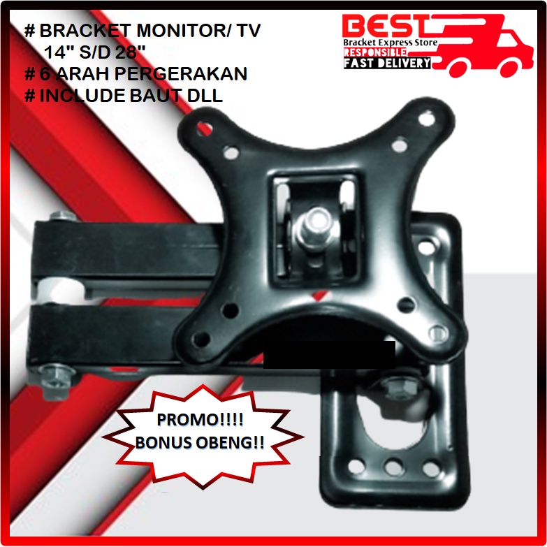 Bracket Monitor PC 14" s/d 28 inch 14 17 19 22 24 27 28 inch swifle/lengan Fleksible moving bracket breket bracket brik