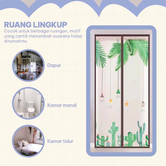 Tirai Pintu Magnet Tebal PVC Khusus Ruang AC/Dapur/Toilet Uk. 90x210cm & 100x210cm Model Velcro (Perekat) Tahan air