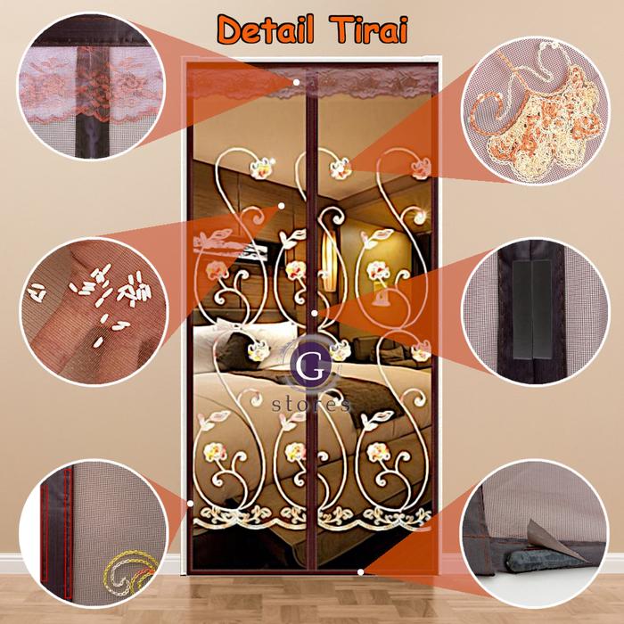 Tirai Magnet Premium Mesh Anti Nyamuk Gorden Magnet Anti Nyamuk Serangga Motif Bordir Embroidery