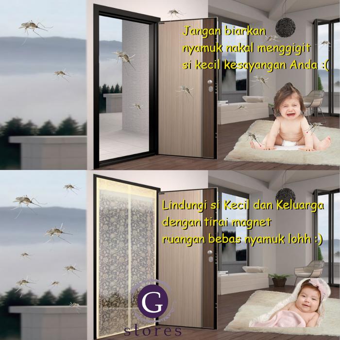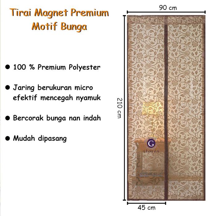 Tirai Magnet Premium Mesh Anti Nyamuk Gorden Magnet Anti Nyamuk Serangga Motif Bunga