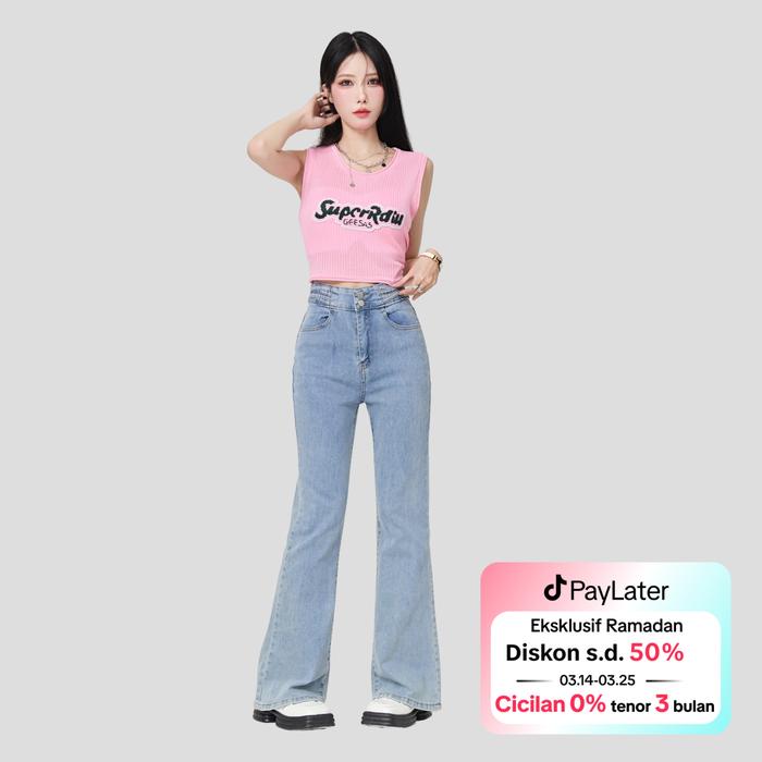 Lassie Alpha J44 celana cutbray jeans wanita biru muda jeans skinny HW jeans berpinggang tinggi fashion gaya Panjang