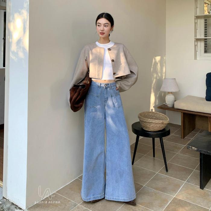 Lassie alpha J73 - Celana Kulot jeans wanita HW Halus Lembut Hight Quality