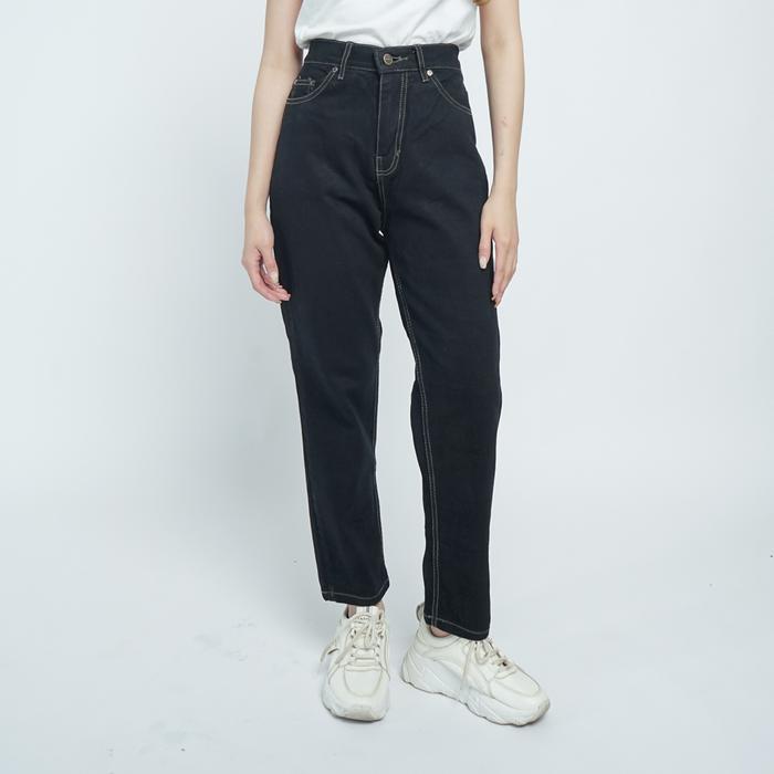ESROCTE Celana Panjang Rubber Boyfriend HighWaist Mom Jeans Wanita / Cewek P43 - 26-38 Biru 001