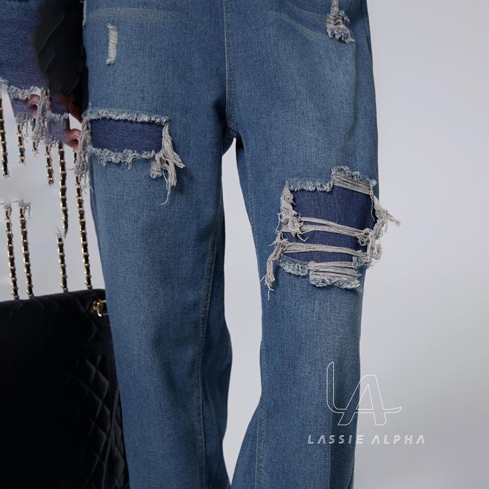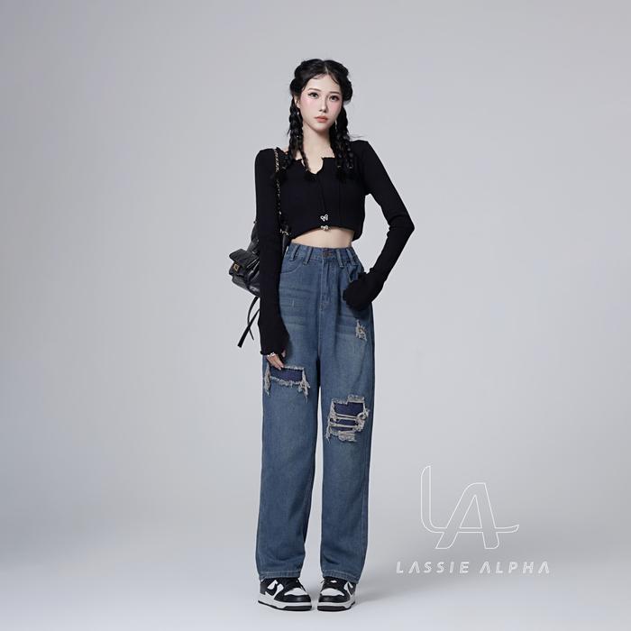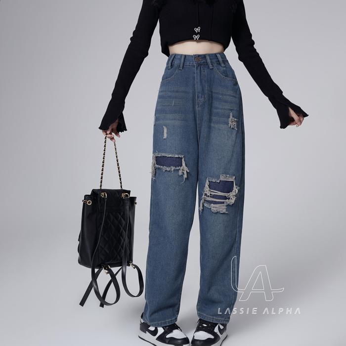 Lassie Alpha J40 Ready Stok Celana Jeans High Waist Wanita Retro Biru Tua Demin Desain - Jahitan Kaki Nyaman